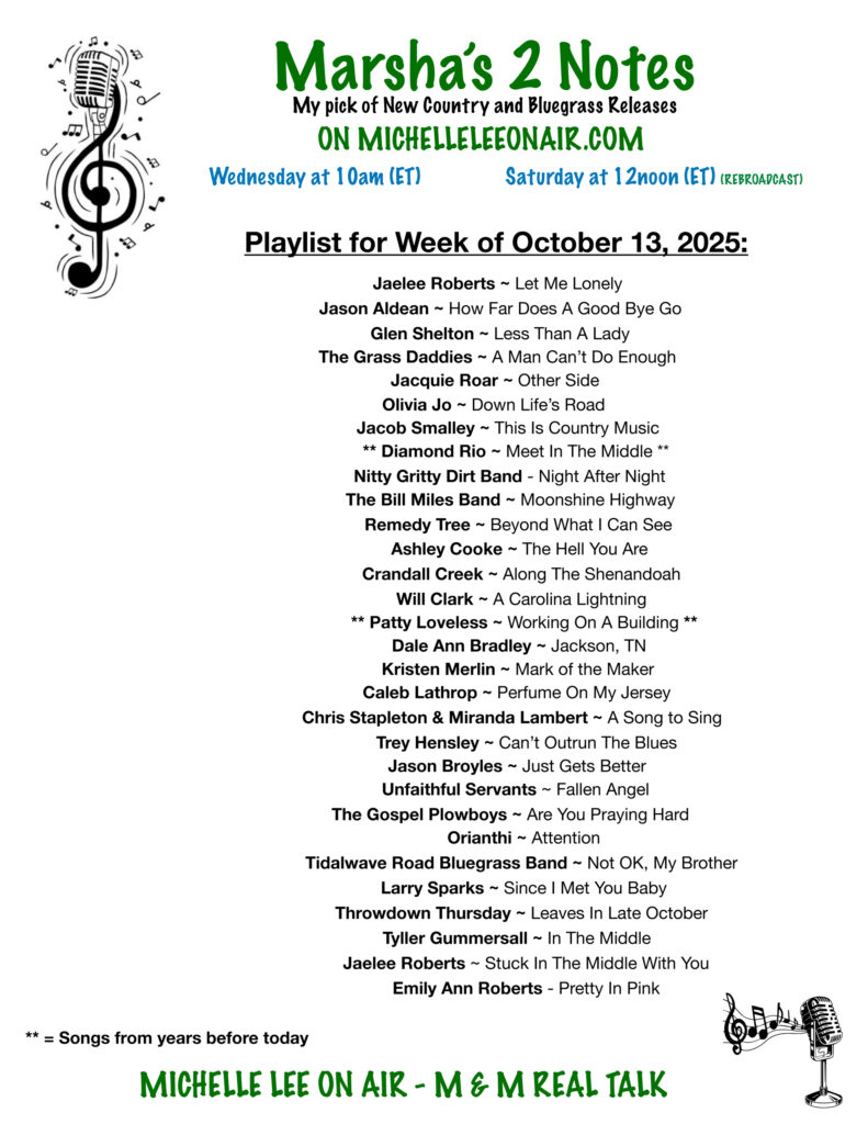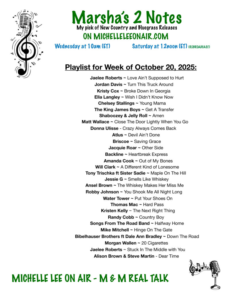 Marsha's 2 Notes - 2025 Country & Bluegrass NEW RELEASES