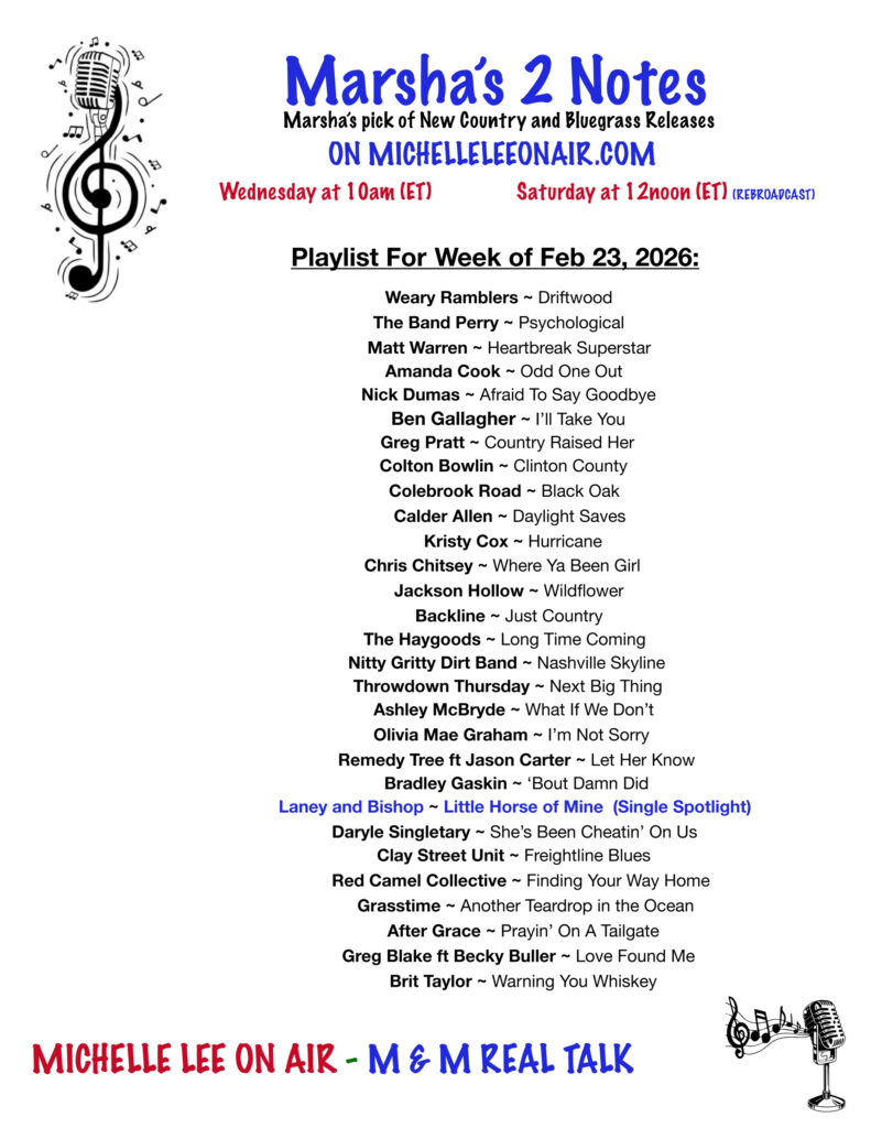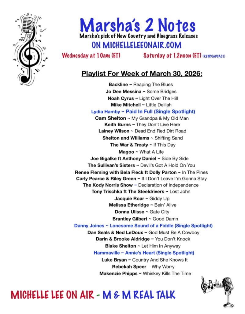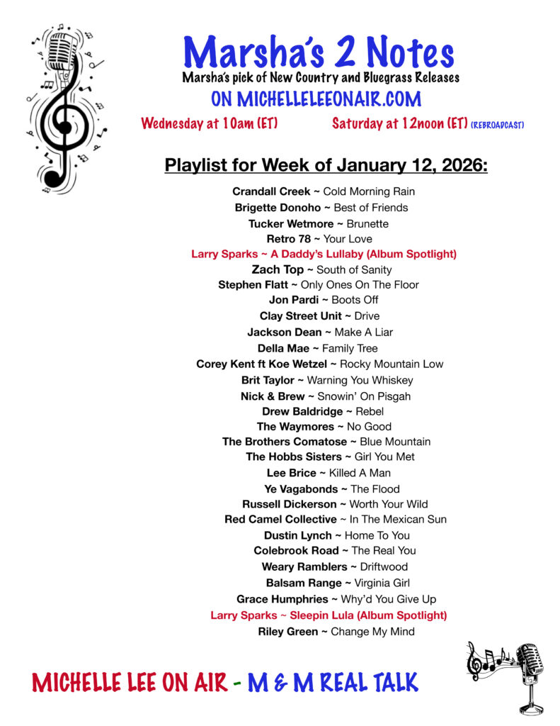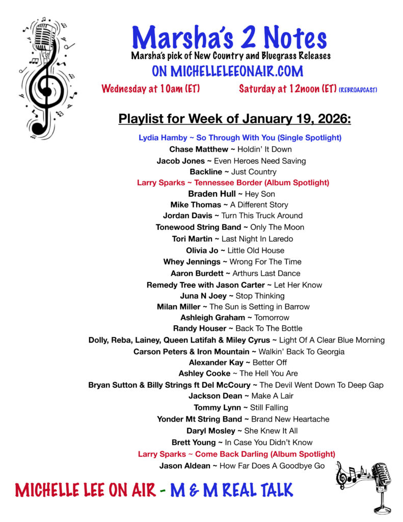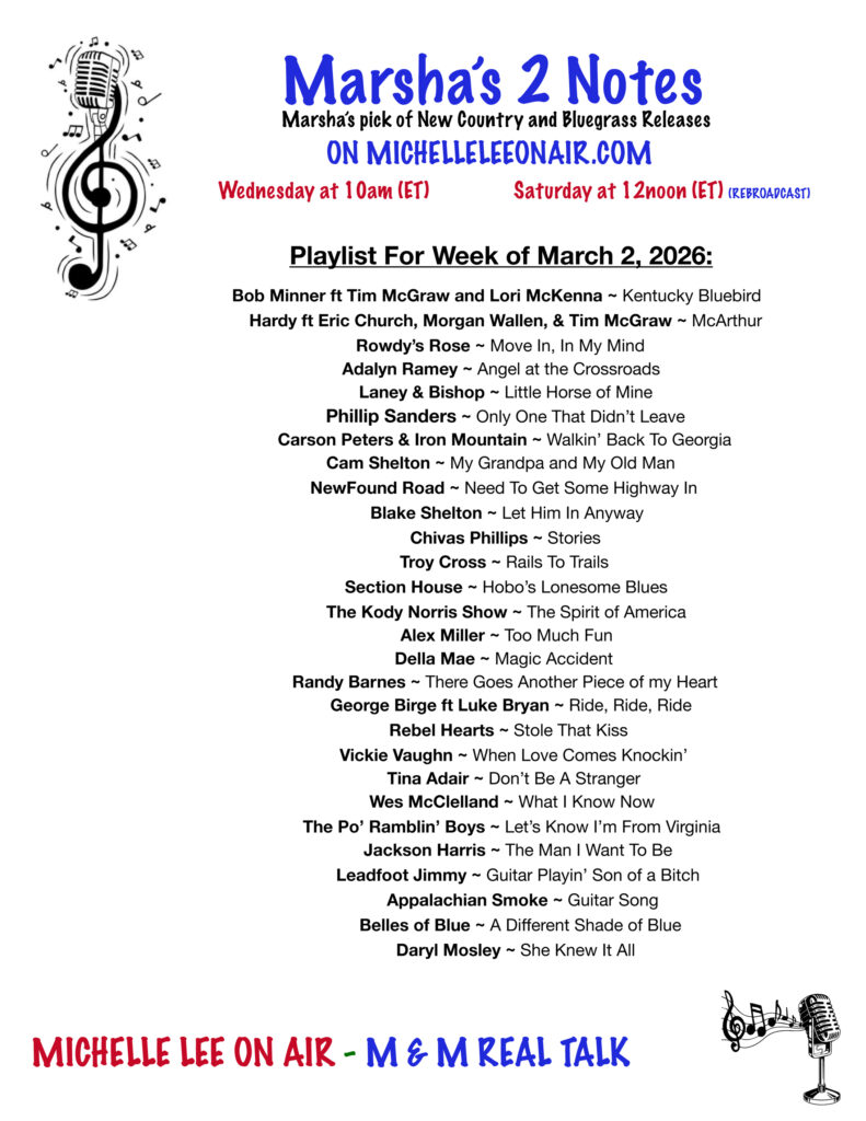Marsha's 2 Notes - 2026 Country & Bluegrass NEW RELEASES